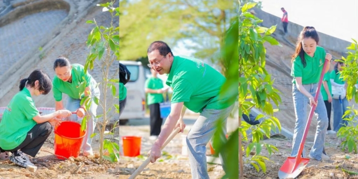 春植万棵树,共筑绿色梦。此次党日活动结合学科专业特色,从生态适应性、景观观赏性和树名寓意出发,选择了幸福树和白玉兰树苗在崖州区种植,党员师生、志愿者与村民协同合作,挥锹铲土、扶苗填坑、围堰浇水,种下了绿色文明示范屏。员工党员袁同学表示,将义务植树纳入劳动教育实践课程,是一种创新且富有意义的举措,这种沉浸式体验既响应了国家生态文明建设的号召,又丰富了劳动教育的内涵,还增强了师生生态保护意识。
