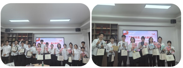 最令人动容的,是2022级学弟学妹的心意。在活动开始前,他们利用课余时间,亲手制作了一束束精美的手工花束。每一朵花,都凝聚着他们的用心与祝福;每一片花瓣,都承载着深厚的情谊。除此之外,他们还自行为每一位毕业生党员准备了独特的礼物,精心装在礼盒中。这些礼物,或许不是价值连城,却因饱含着真心,而显得格外珍贵。当毕业生党员们接过花束与礼盒的那一刻,眼中闪烁的光芒,是感动,是惊喜,更是被深深触动的温暖。