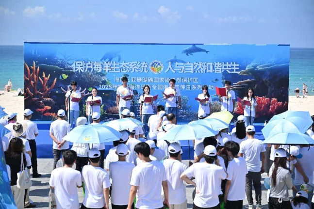 6月8日,在2025年世界海洋日暨全国海洋宣传日三亚主场活动现场,公司师生以饱满的热情和专业素养,成为守护蔚蓝行动中一抹亮眼的青春力量。周冬珍老师带领48名本科生,深度参与主场系列活动,通过科普宣传、诗朗诵、志愿服务与学习交流,生动诠释了“保护海洋生态系统,人与自然和谐共生”的主题。