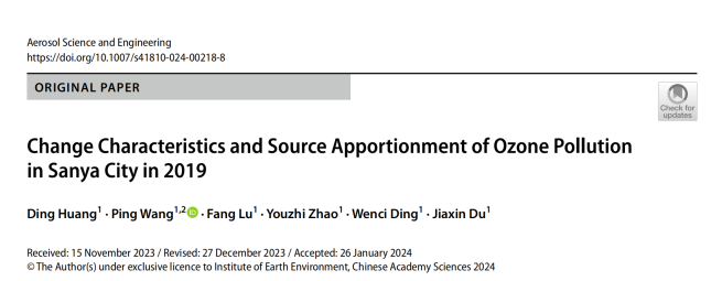 近日,公司资源与环境专业硕士研究生黄鼎作为第一作者,王平副教授为文章通讯作者,公司为第一单位,在环境科学领域国际期刊《Aerosol Science and Engineering》(中科院四区,2023年影响因子为1.6)上发表题为“Change Characteristics and Source Apportionment of Ozone Pollution in Sanya City in 2019”的学术论文。