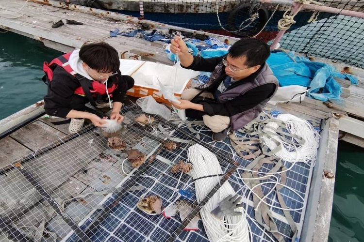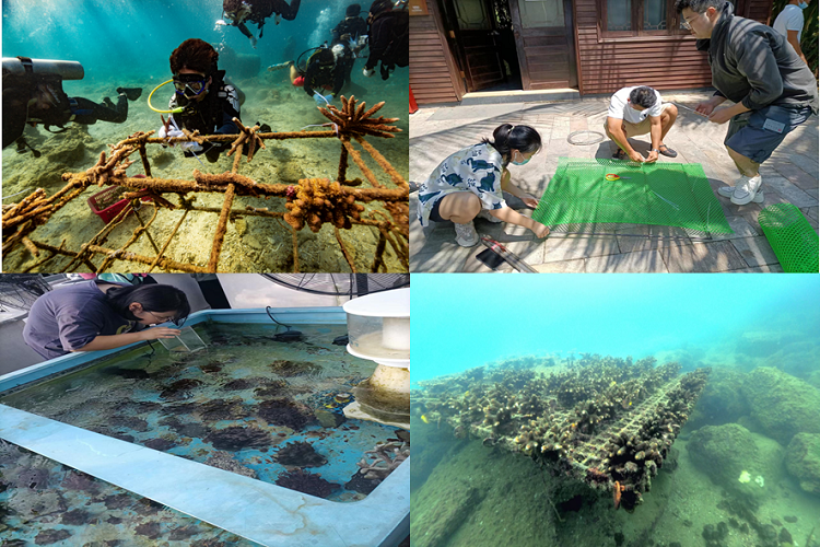师生共同进行珊瑚修复实验